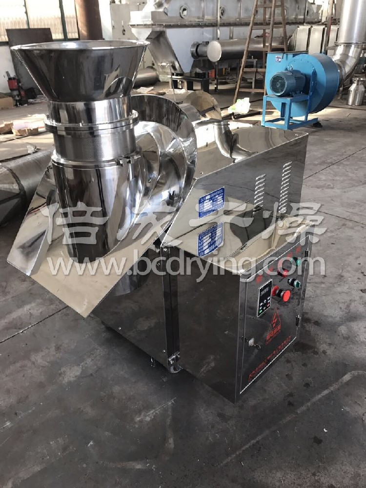 安徽某保健食品公司訂購(gòu)的旋轉(zhuǎn)擠壓造粒機(jī)在固體粉料與液體共存并以固相為主的分散體中,利用分散體的自粘性(或外加粘結(jié)劑),通過(guò)強(qiáng)制方式(如擠壓、重力、離心力、機(jī)械力、氣流沖力等)使固體粉料基本微粒相互粘接、增大。并形成一定形狀和粒度均勻,集中的顆粒群。濕法造粒成套裝置主要由混合(捏和)、造粒、干燥及其輔助系統(tǒng)設(shè)備組成。粉料經(jīng)混合(捏和)后,進(jìn)入造粒機(jī)形成所需粒度的含濕產(chǎn)品,經(jīng)干燥得到顆粒狀成品,從而實(shí)現(xiàn)造粒的目的。