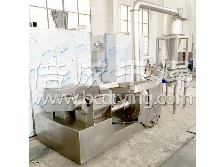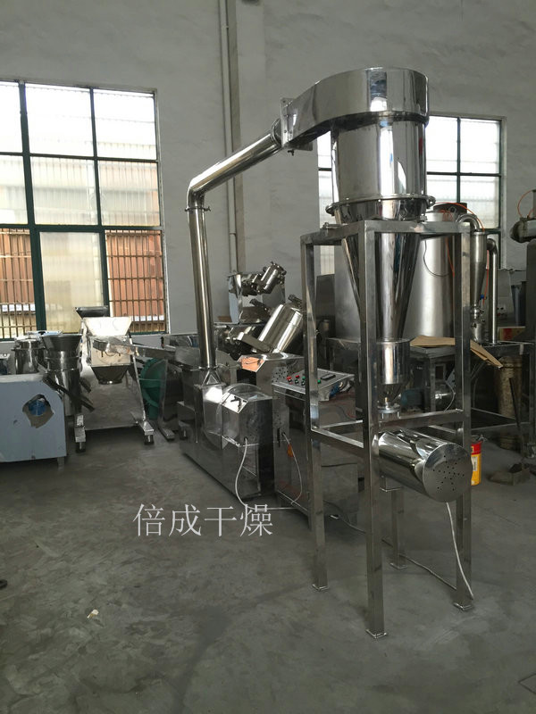該機(jī)廣泛用于制藥、化工、食品行業(yè),全套機(jī)器有主機(jī)、輔機(jī)、除塵器、電控箱四個(gè)部分組成,均可粉碎油脂含量達(dá)25%以內(nèi)的香辛料、油性料,同時(shí)也可以粉碎機(jī)纖維含量比較高的中草藥。粒度用篩網(wǎng)控制,常溫下過程生產(chǎn)連續(xù)進(jìn)行。具體粉碎物品有辣椒、胡椒、黑胡椒、白胡椒、綠胡椒、肉桂、孜然、草寇、大紅袍花椒、桂皮、紅寇、紅曲米、豆蔻、紅麻椒、蒜香、八角、丁香、砂仁、香葉、草果、姜黃、干姜、白芷、小茴香、大料、油性物料及纖維性物料等物料,不需要粗粉碎可直接投料,產(chǎn)量大,不變色,維持物料的原有物理化學(xué)特性。