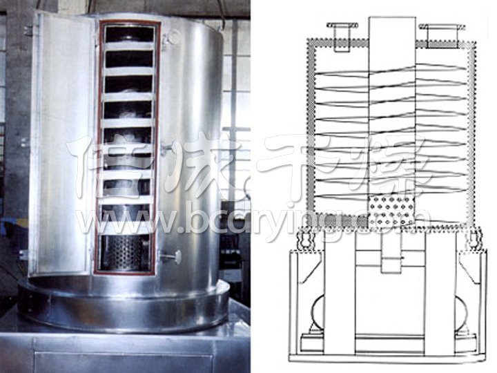 ●物料沿螺旋床自下而上作圓周運(yùn)動(dòng)的同時(shí),自身也產(chǎn)生跳躍,從而增加了物料與熱風(fēng)的接觸,增強(qiáng)了干燥效果。