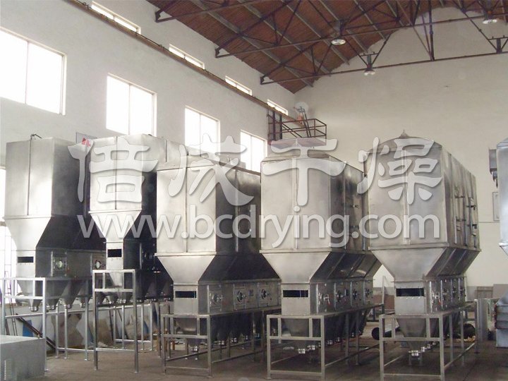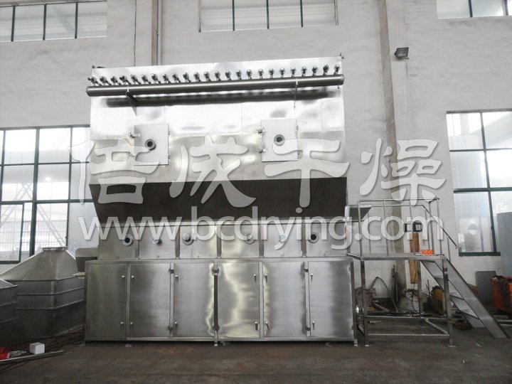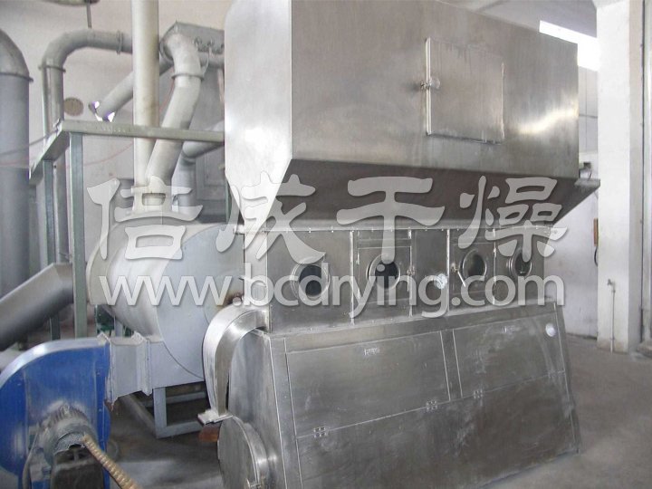 潔凈的熱風經閥板分配進入床體內,從加料器進入的濕物料被熱風形成沸騰狀態(tài)。由于熱風與物料廣泛接觸,增強了傳熱傳質的過程,因此在較短時間內就可干燥。如用連續(xù)型,物料從床體的一頭進入,經過幾十秒至幾分鐘沸騰干燥,自動從床體另一頭流出。本設備一般進行負壓操作。